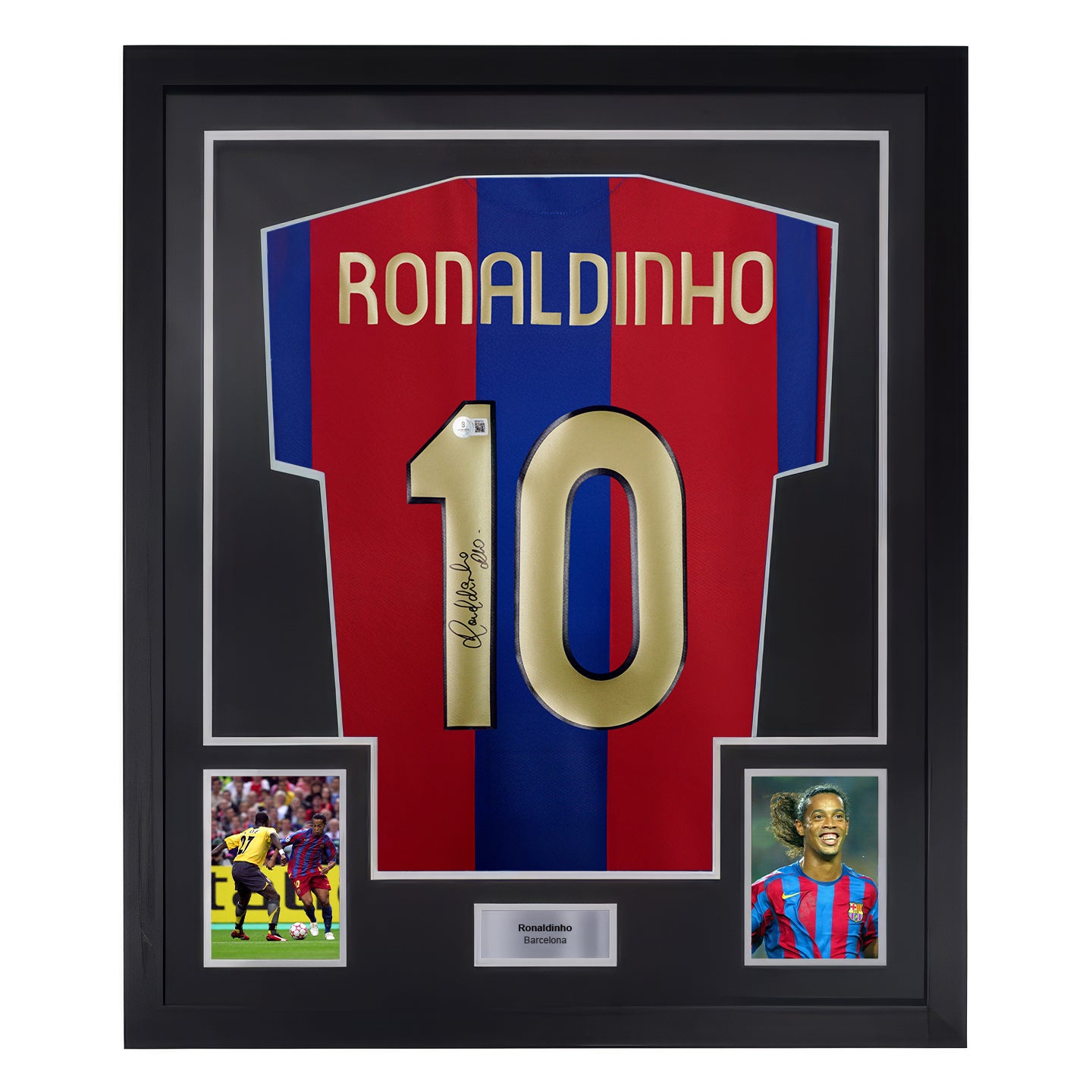 Framed Ronaldinho Signed Barcelona Home Soccer Jersey #10 with Beckett COA