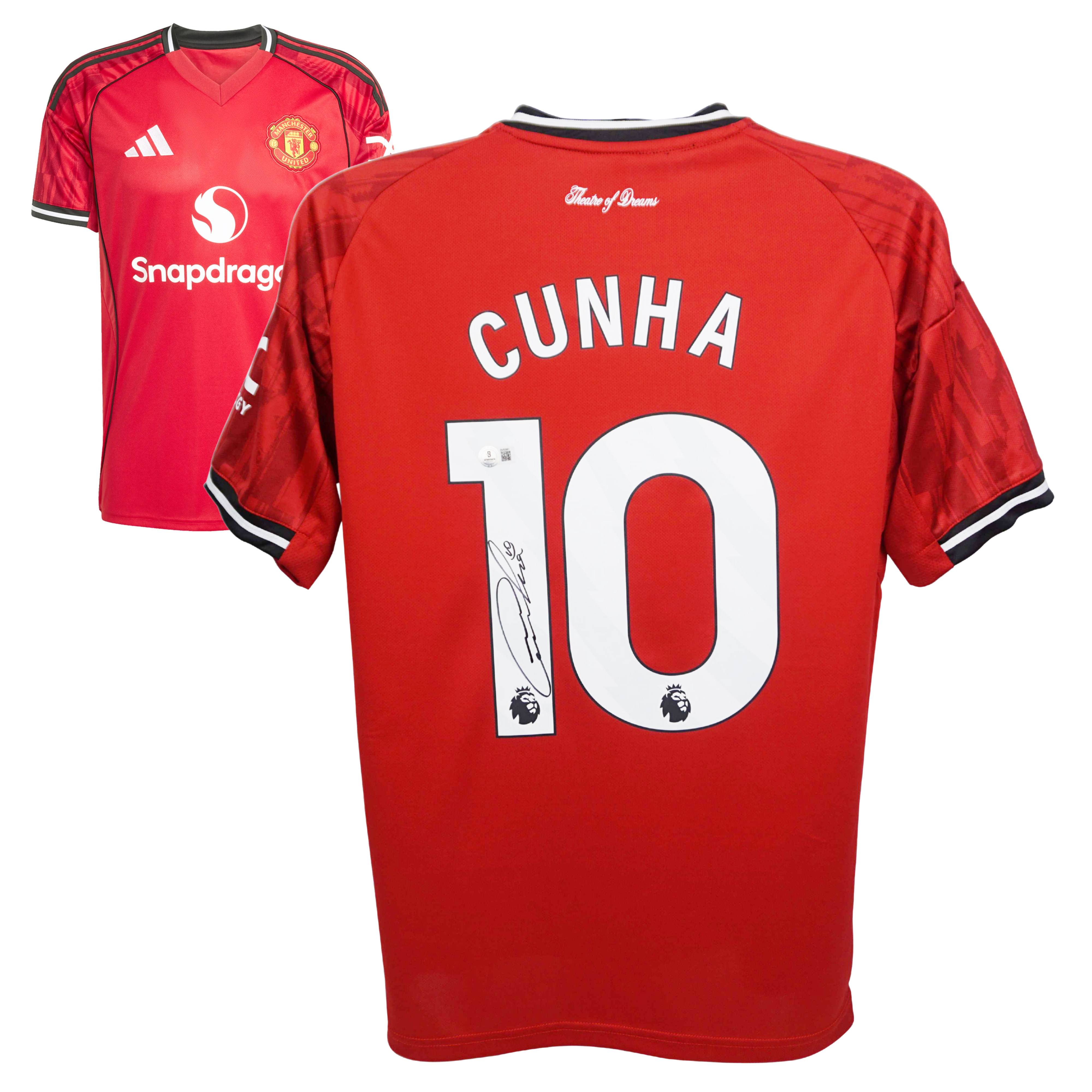 Matheus Cunha Signed Manchester United Home Soccer Jersey #10 with Beckett COA