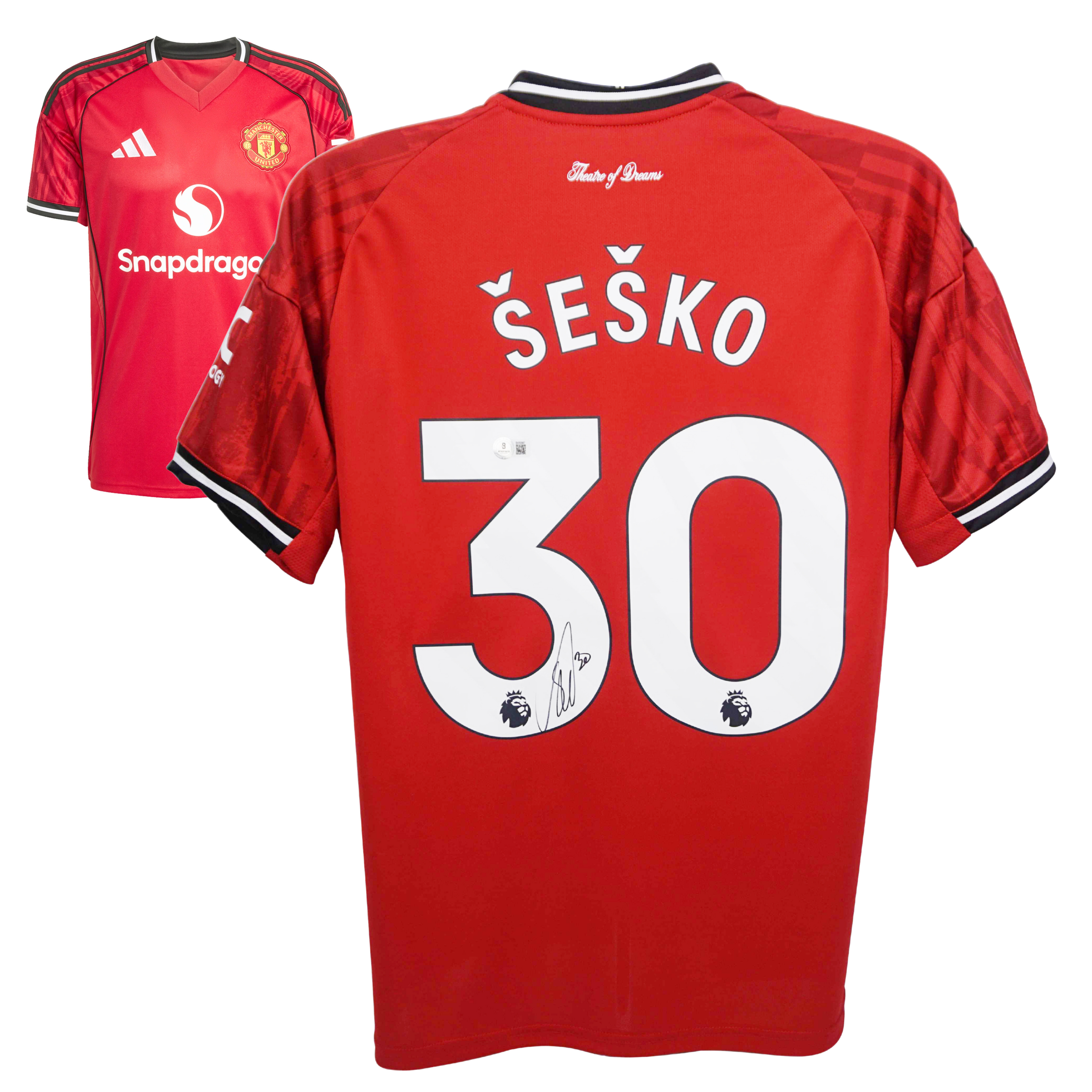 Benjamin Sesko Signed Manchester United Home Soccer Jersey #30 with Beckett COA