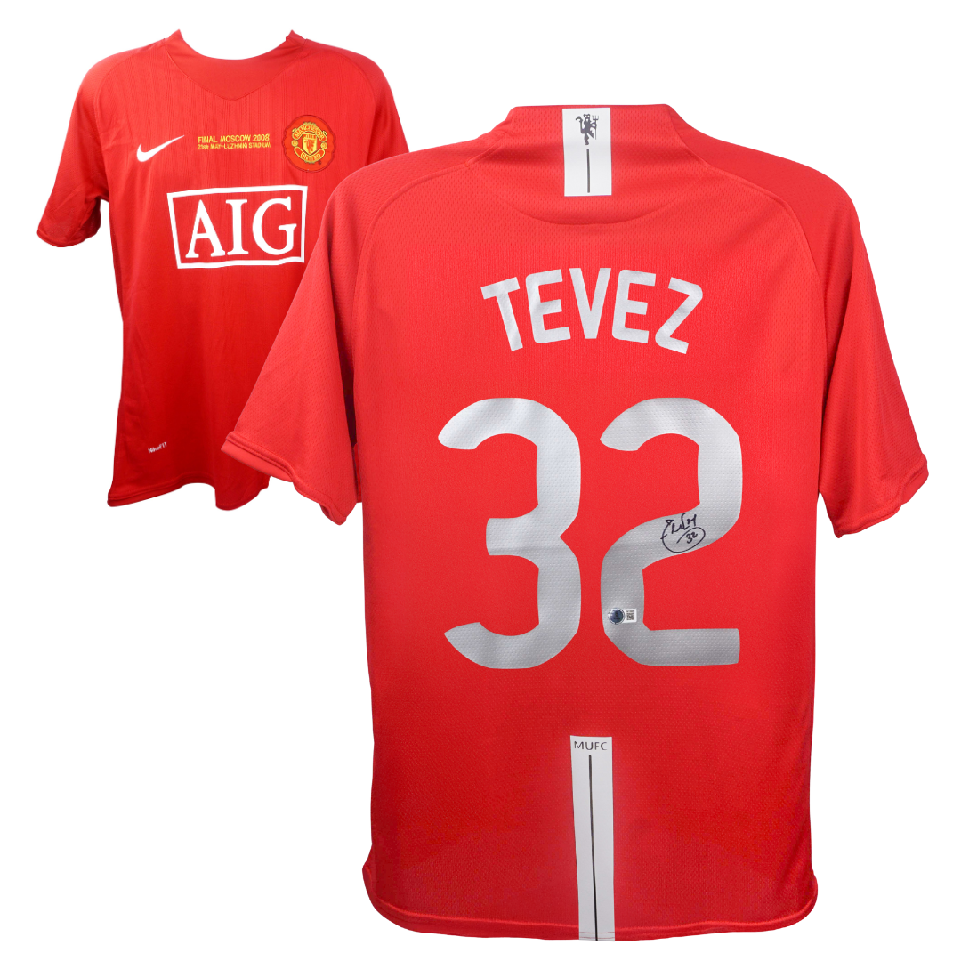 Carlos Tevez Signed Manchester Utd 08 UCL Final Jersey #32 with Beckett Witness