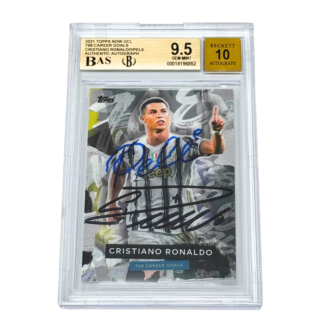 Cristiano Ronaldo & Pele Signed 2021 Topps Now Goal Record – BGS 9.5 AUTO 10