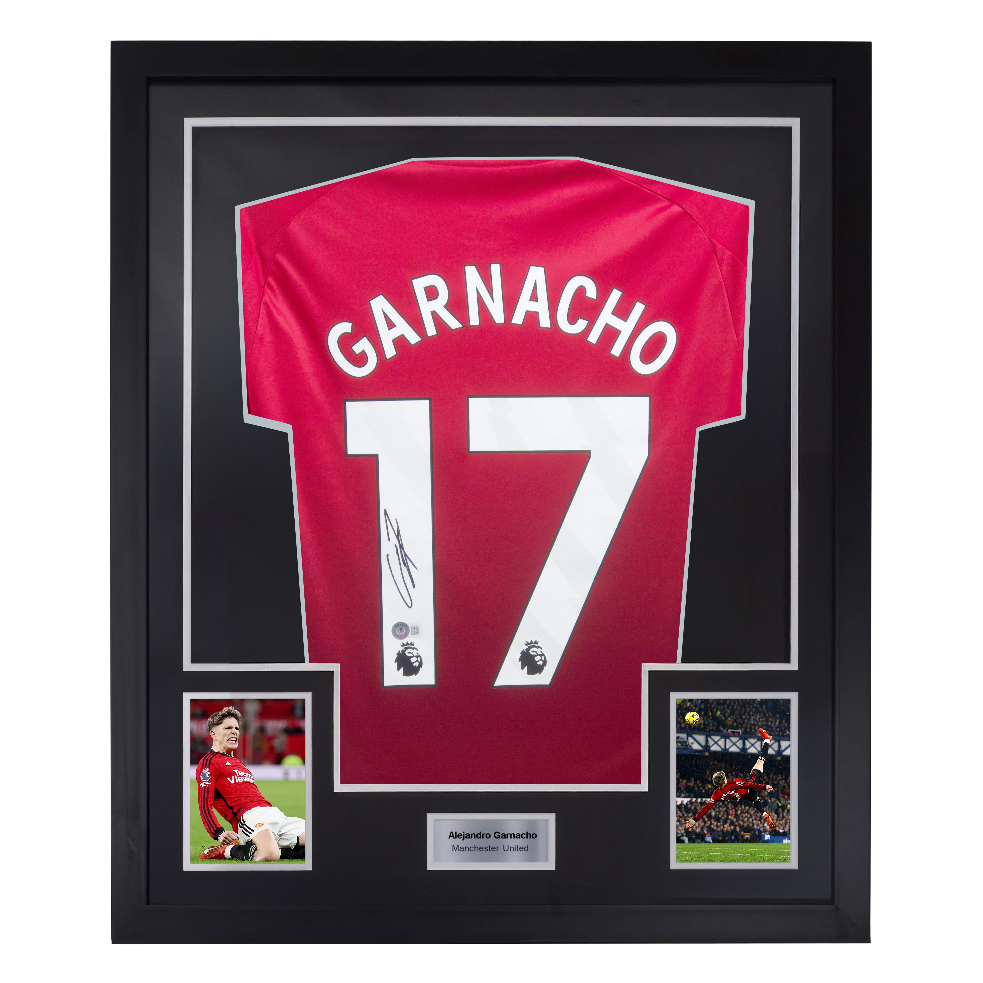 Framed Alejandro Garnacho Signed Manchester Utd Home Soccer Jersey #17 with Beckett COA