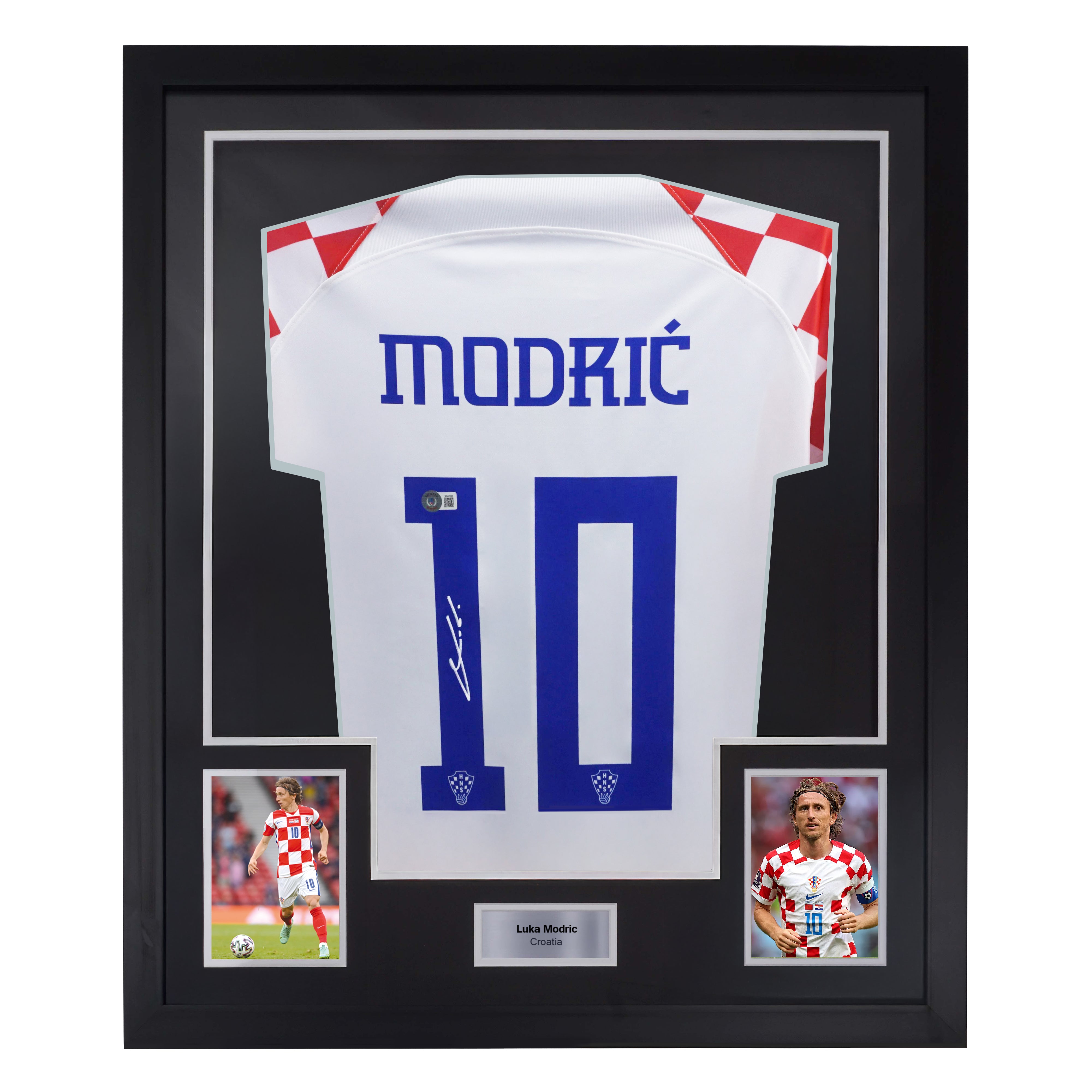 Framed Luka Modric Signed Croatia FC Home Soccer Jersey #10 with Beckett COA