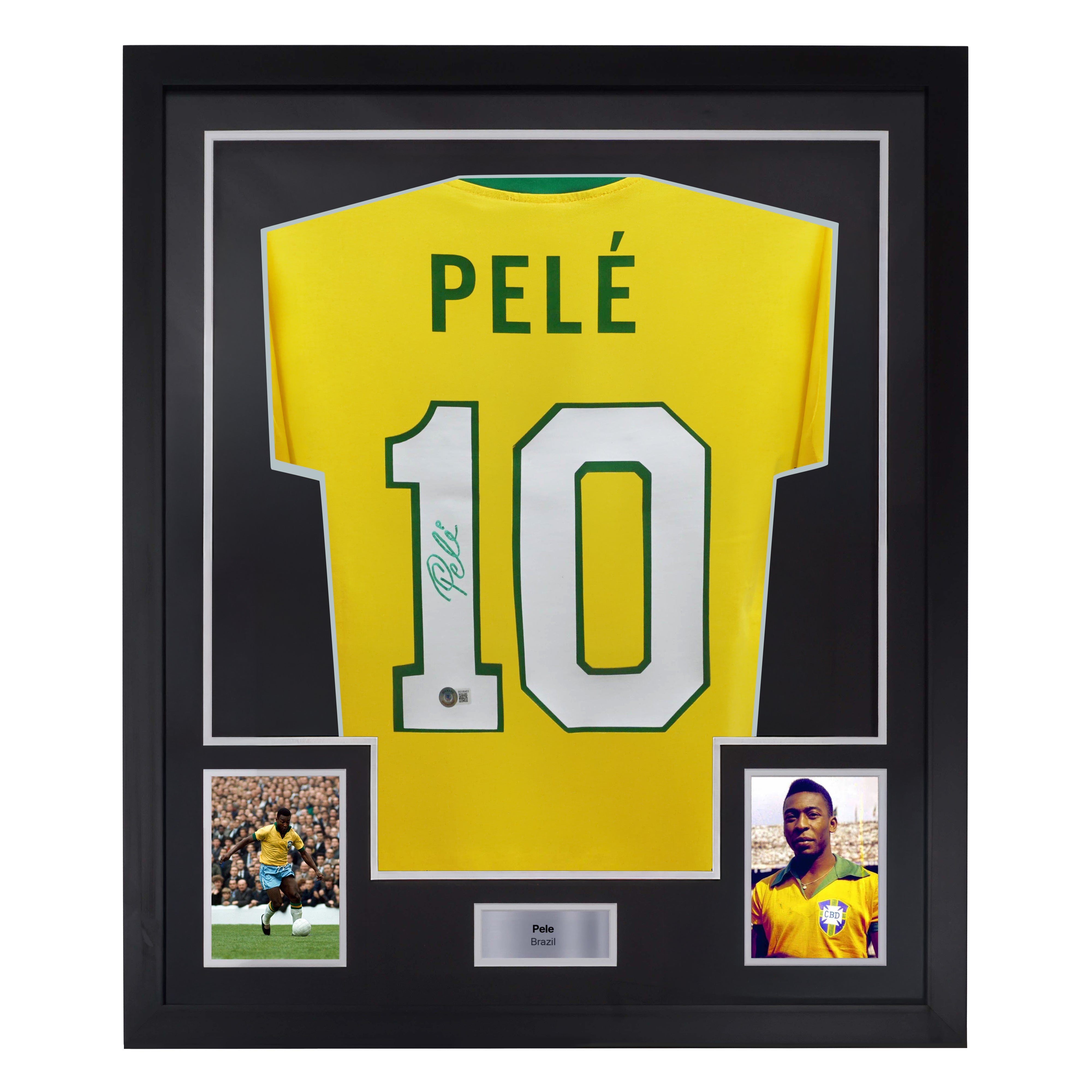 Framed Pele Signed Vintage Brazil FC Home Soccer Jersey #10 with Beckett COA