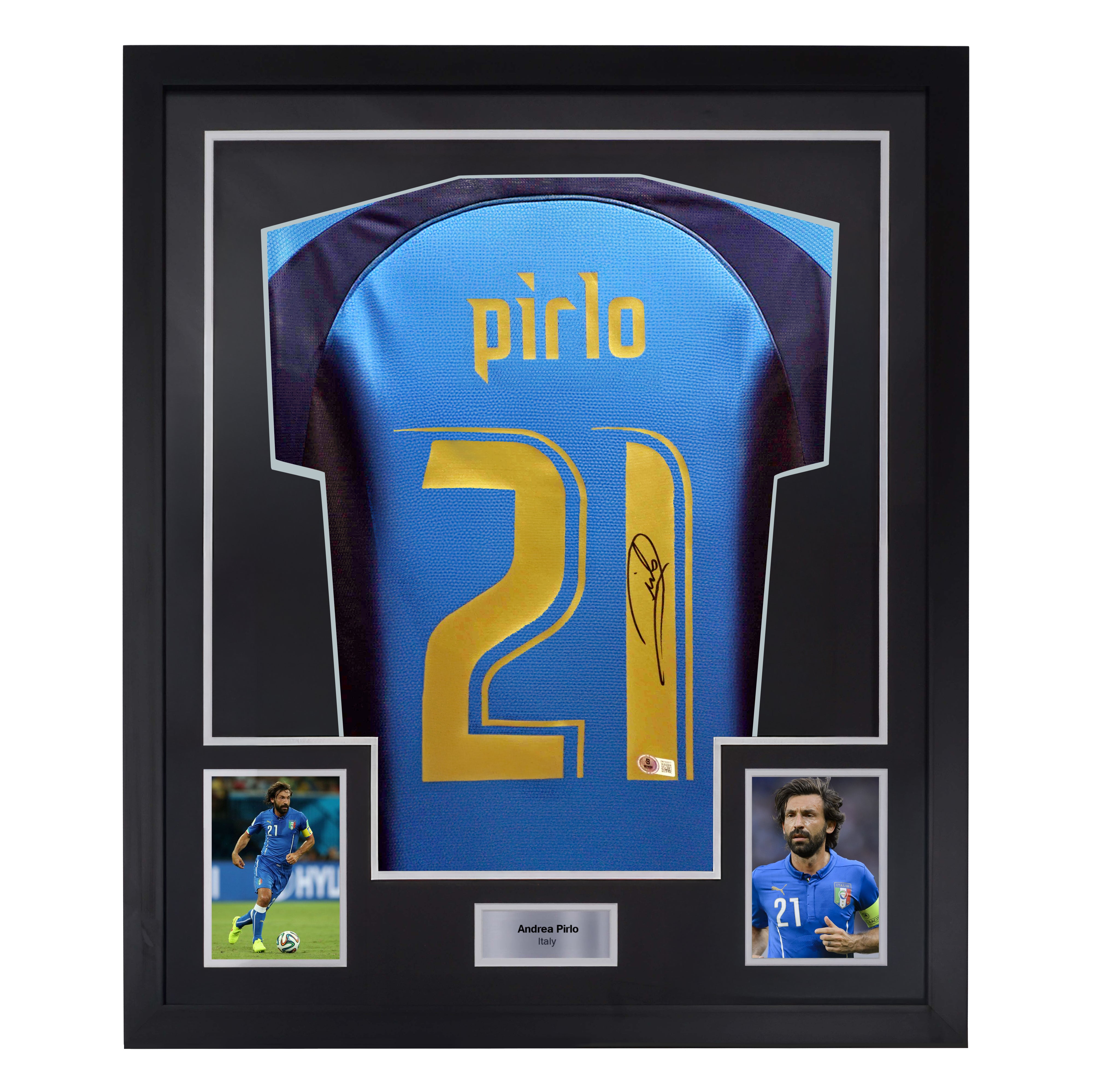 Framed Andrea Pirlo Signed Italy FC Home Soccer Jersey #21 with Beckett Witness