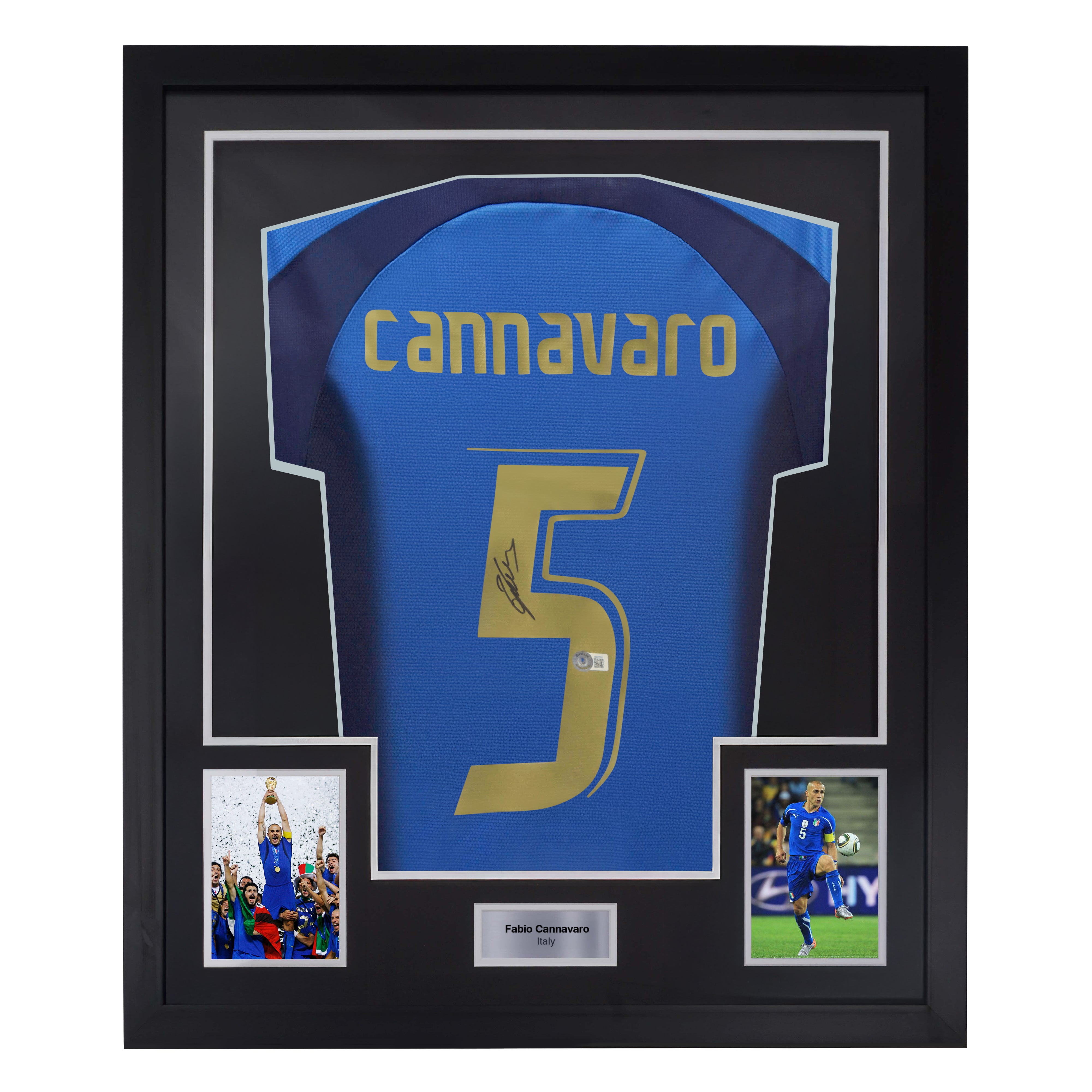 Framed Fabio Cannavaro Signed Italy FC Home Soccer Jersey #5 with Beckett COA
