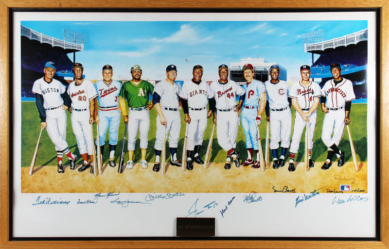 500 HR Club 12 Signatures, Aaron, Williams, Mantle +9 Others Framed Print Size 23.5" x 38" with Beckett COA