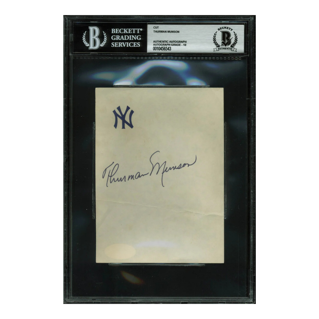 Thurman Munson Signed New York Yankees Baseball Cut - BGS Autograph 10