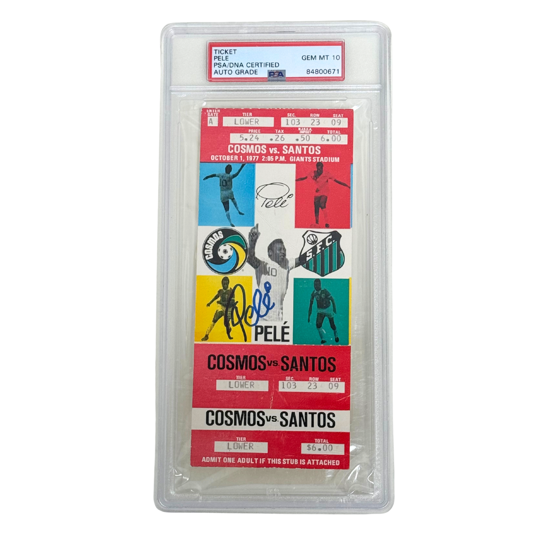 Pele Signed 1977 Final Pro Game New York Cosmos Full Match Ticket – PSA Authentic
