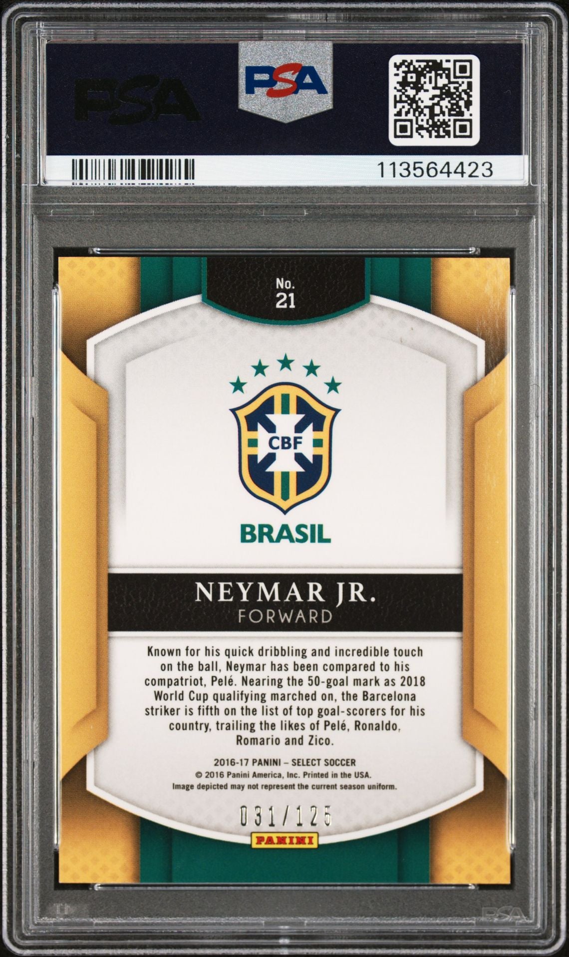 Neymar Jr Signed 2016 Panini Select Neon Yellow Prizm /125 - PSA 9 AUTO 10