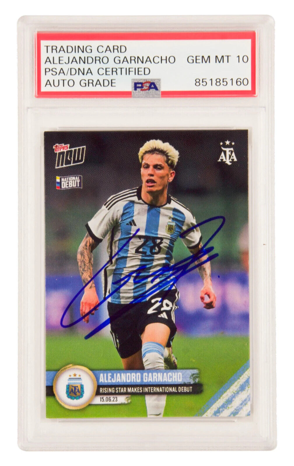 Alejandro Garnacho Signed 2022-23 Topps Now Argentina Debut Rookie Card – PSA 10