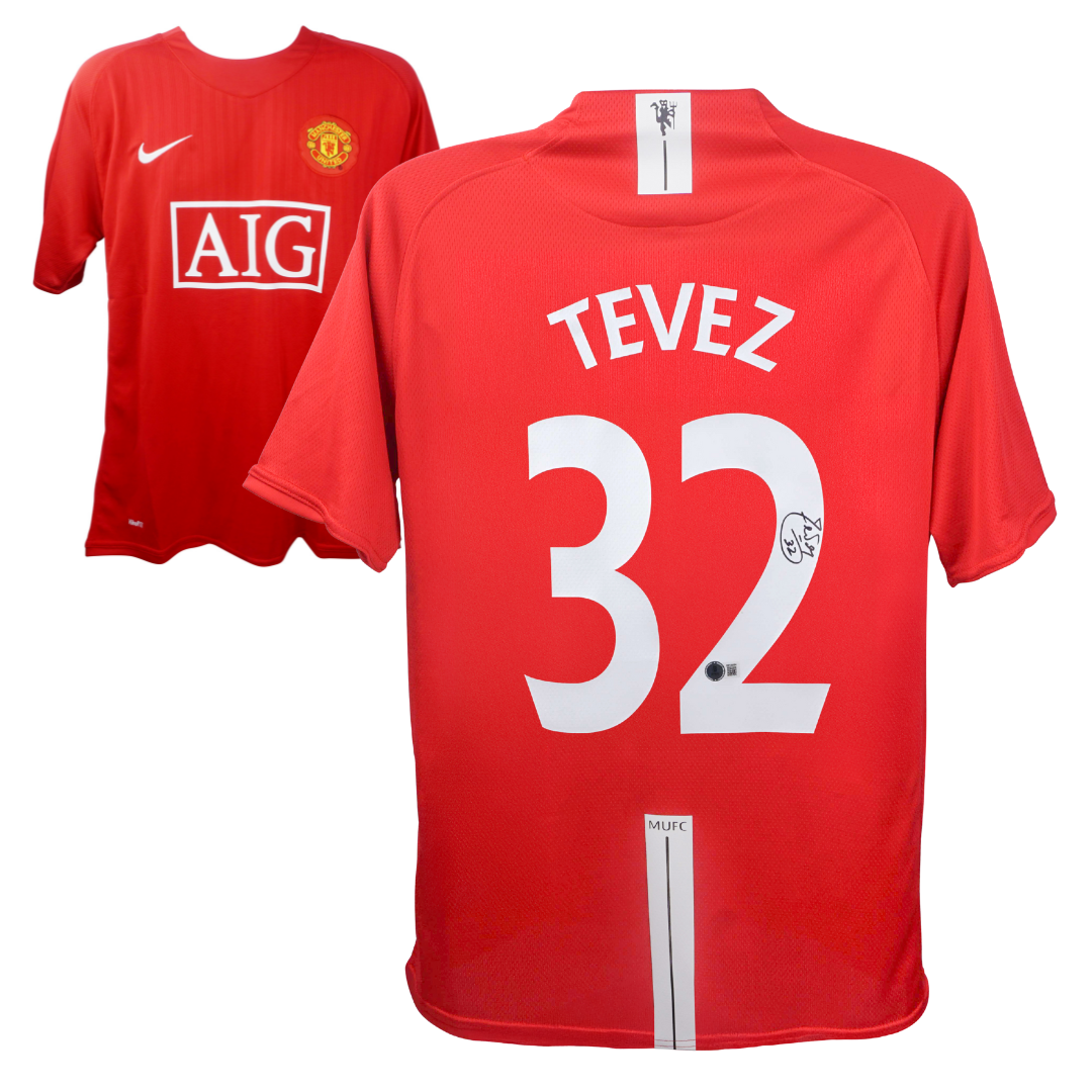 Carlos Tevez Signed Manchester Utd Home Soccer Jersey #32 with Beckett Witness