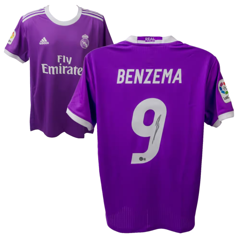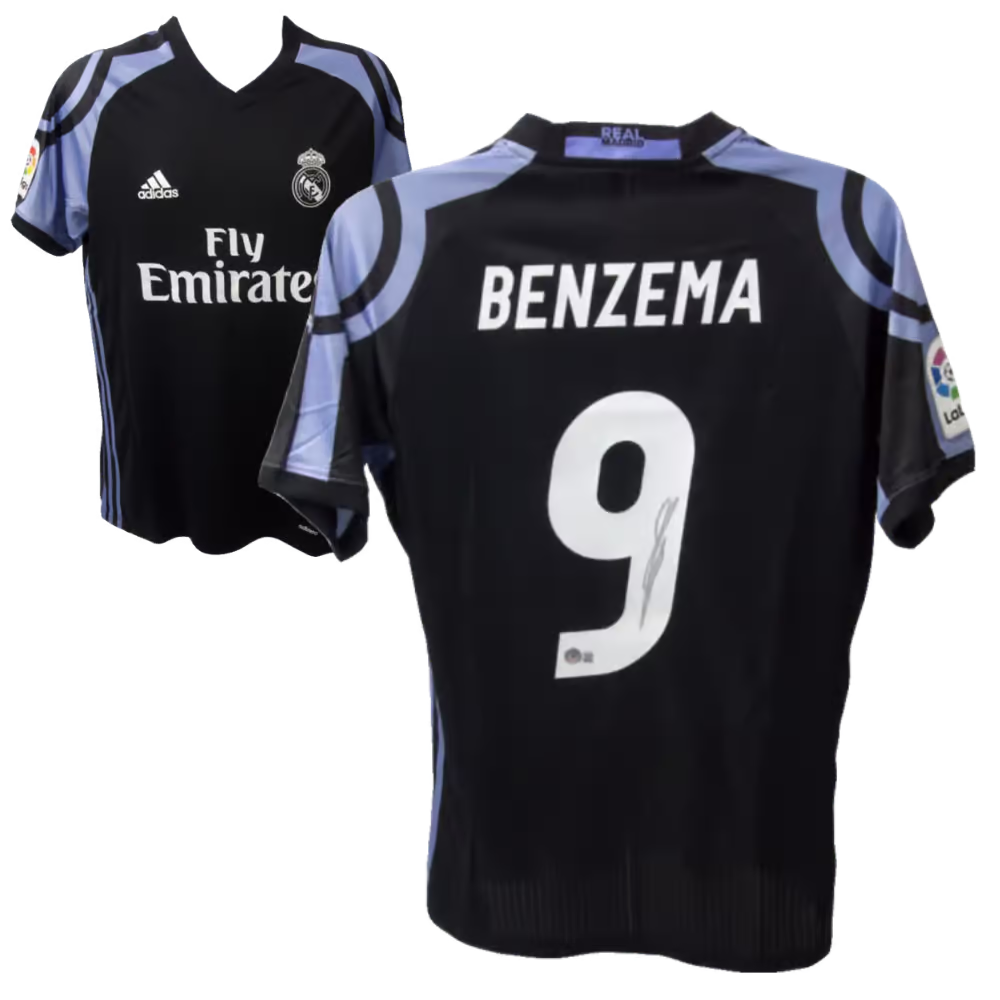 Karim Benzema Signed Real Madrid FC Away Soccer Jersey #9 with Beckett COA