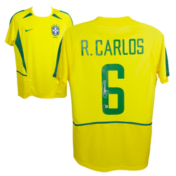 Roberto Carlos Signed Brazil Home Soccer Jersey #6 with Beckett Witness