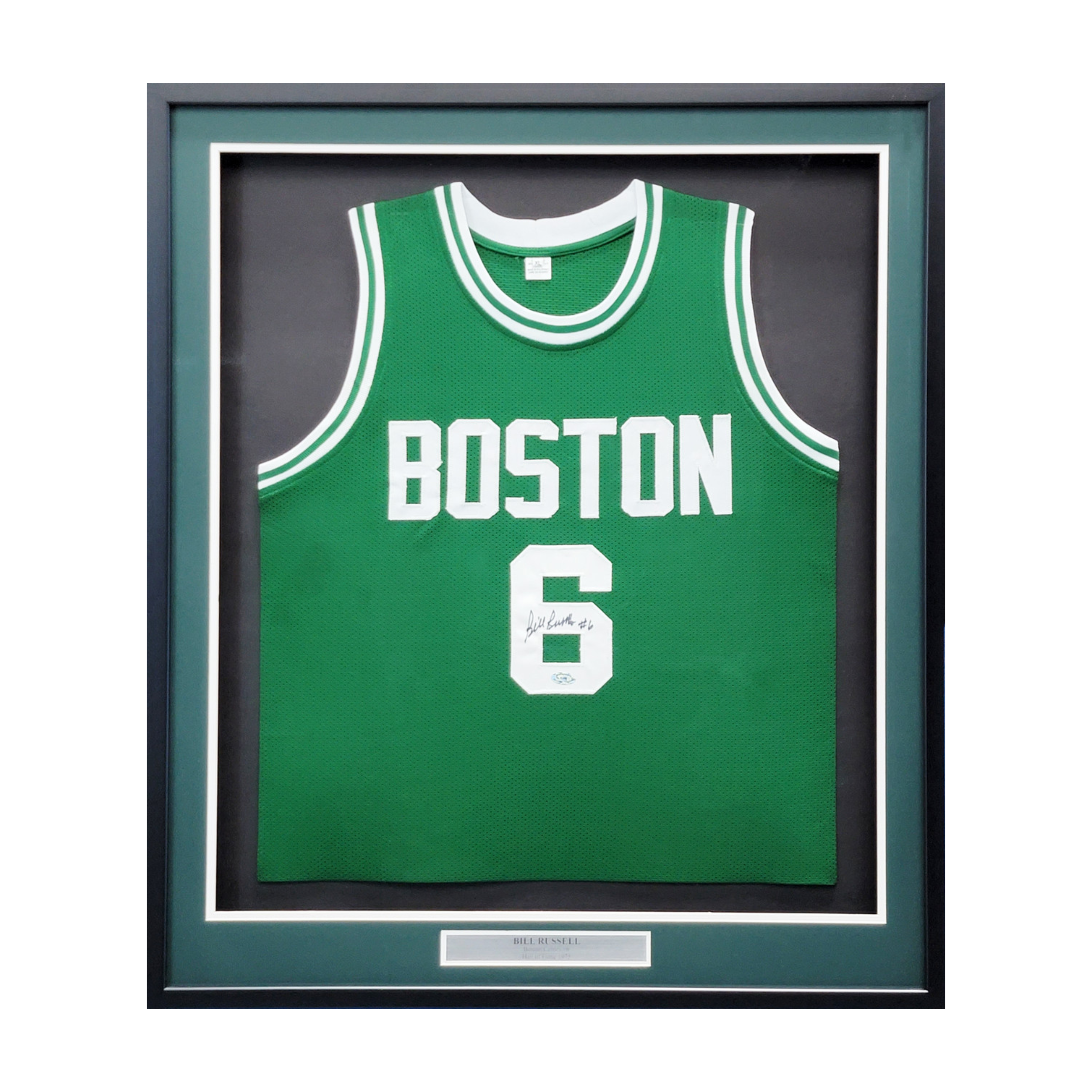 Boston Celtics Bill Russell Autographed Framed Green Jersey JSA