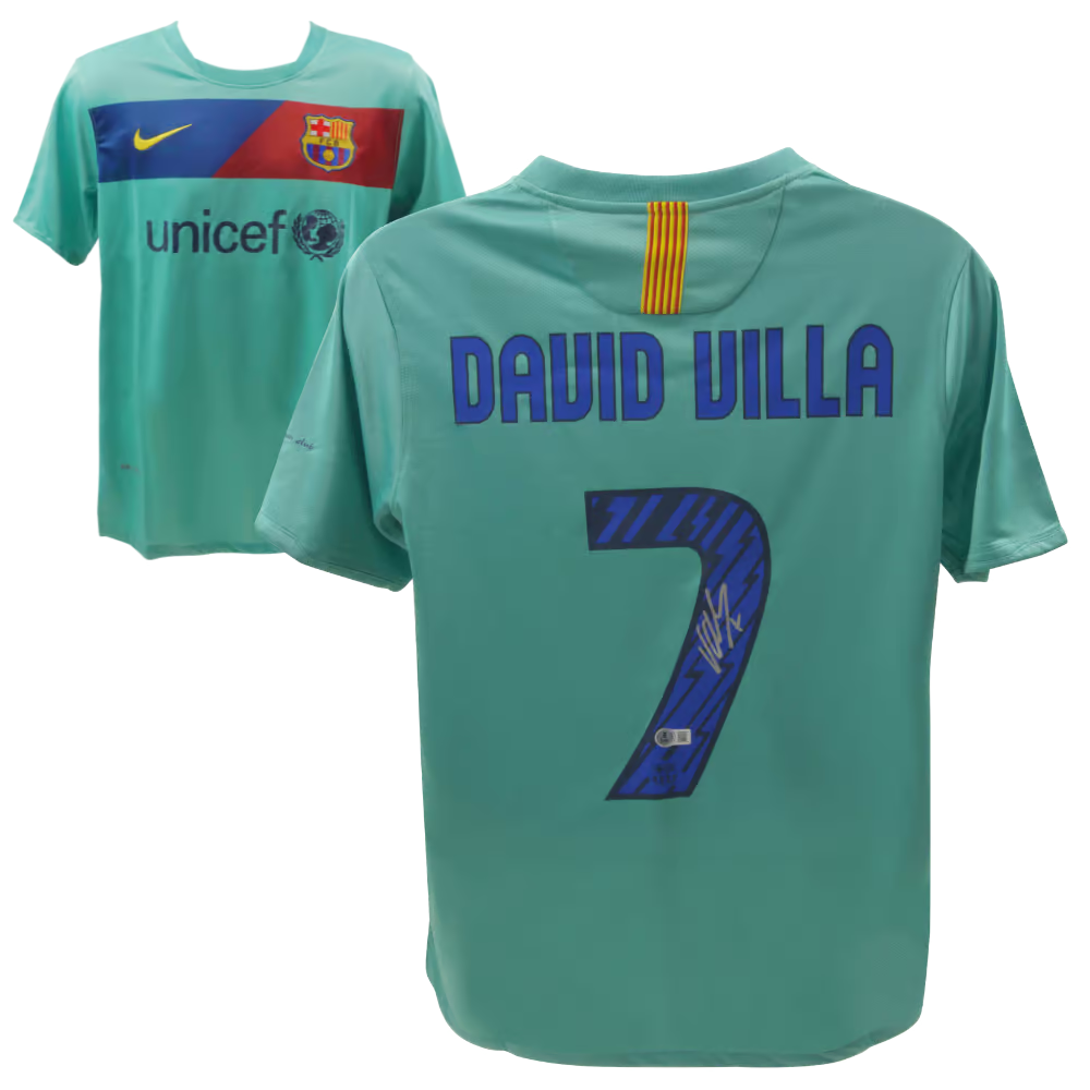 David Villa Signed FC Barcelona Away Soccer Jersey #7 with Beckett Witness