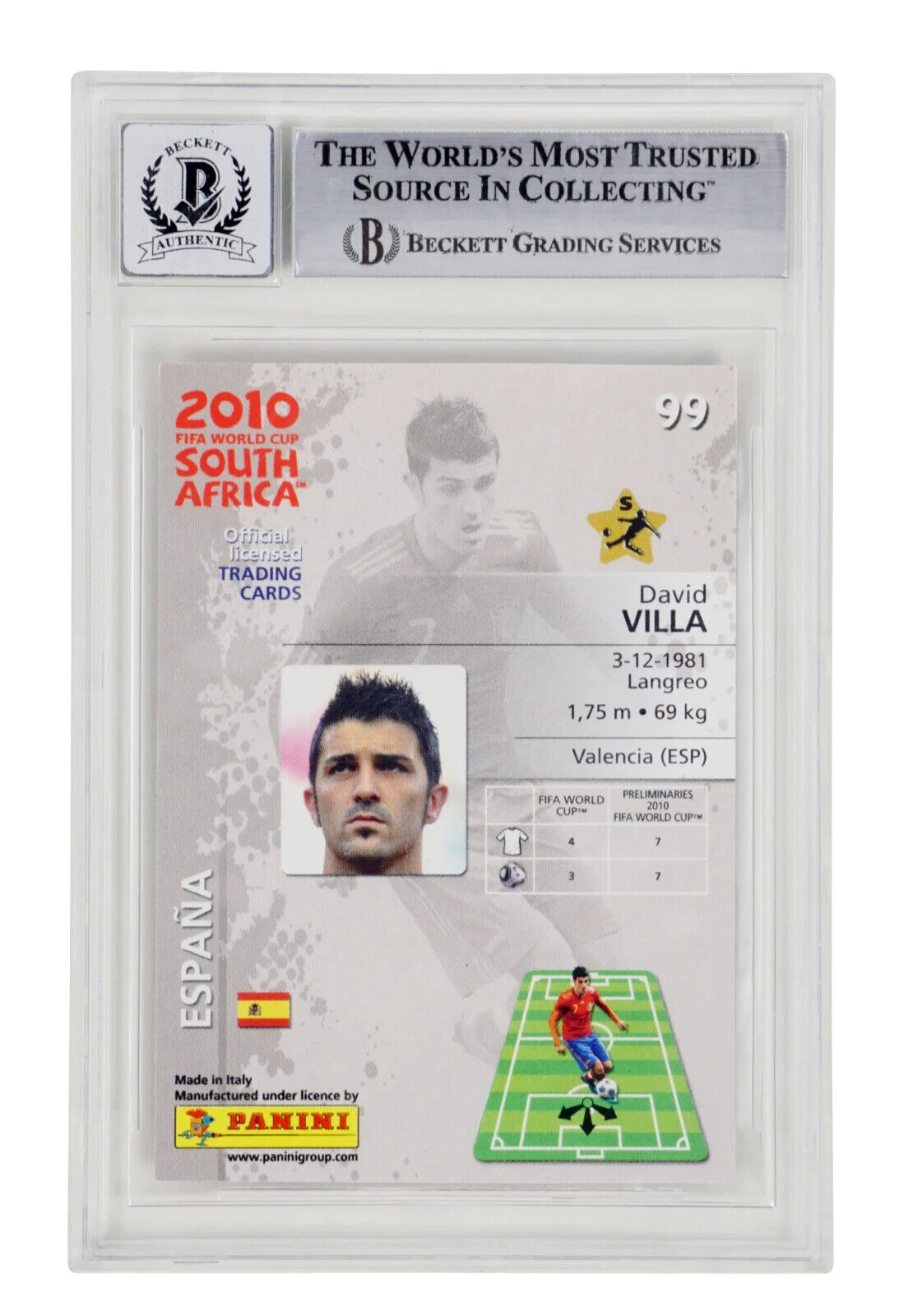 David Villa Signed 2010 Panini World Cup Premium #99 – BGS 10 Autograph