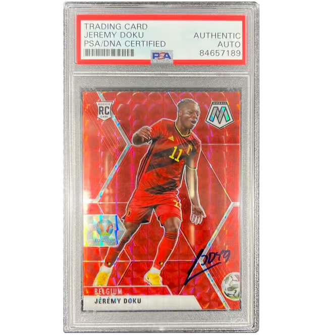 Jeremy Doku Signed 2021 Panini Mosaic Red Prizm Rookie #11 – PSA Authentic