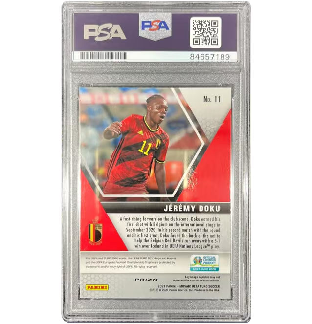 Jeremy Doku Signed 2021 Panini Mosaic Prizm Rookie #11 – PSA Authentic