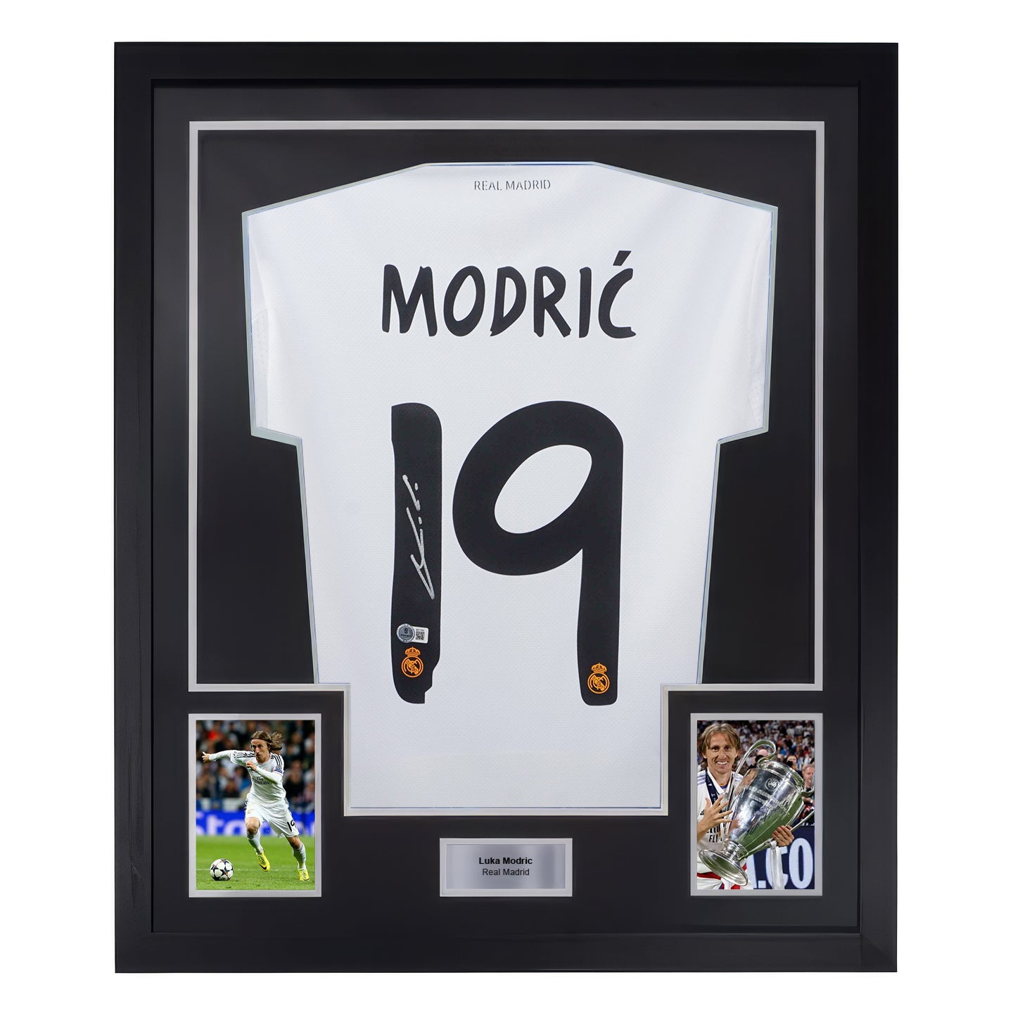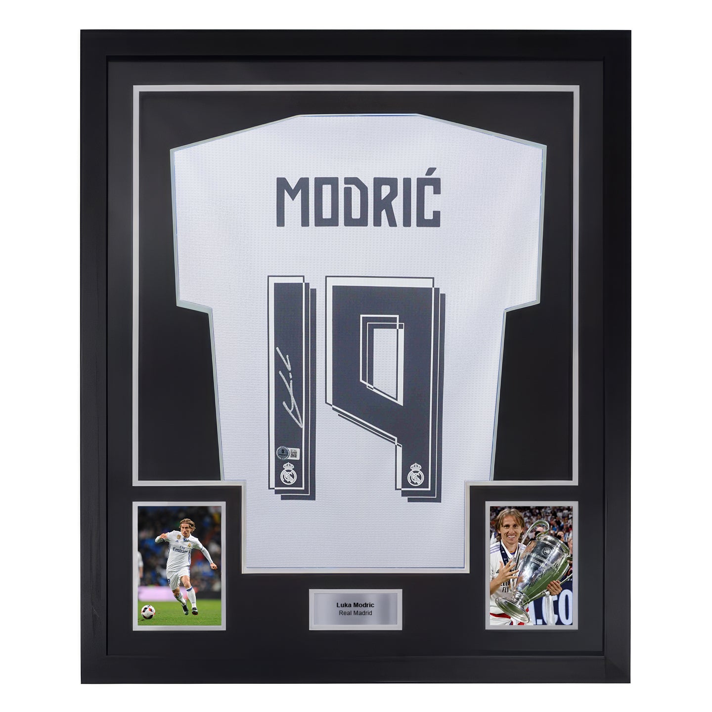 Framed Luka Modric Signed Real Madrid FC Soccer Jersey #19 with Beckett COA