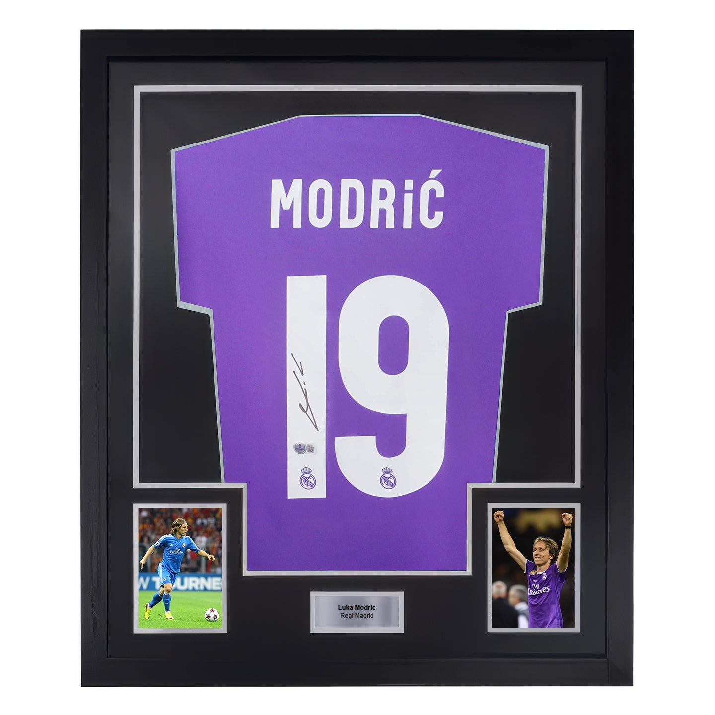 Framed Luka Modric Signed Real Madrid FC UCL Final Soccer Jersey #19 with Beckett COA