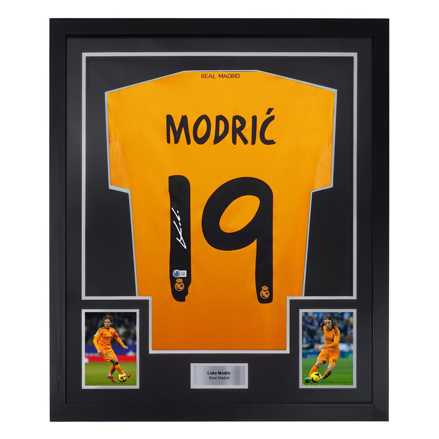 Framed Luka Modric Signed Real Madrid FC Away Soccer Jersey #19 with Beckett COA