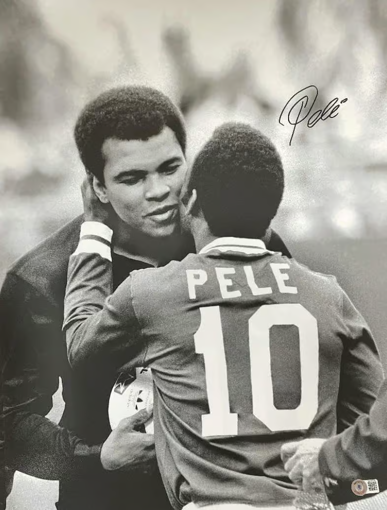 Pele Signed Iconic Muhammad Ali Soccer Print Size 8″ x 10″ with Beckett COA