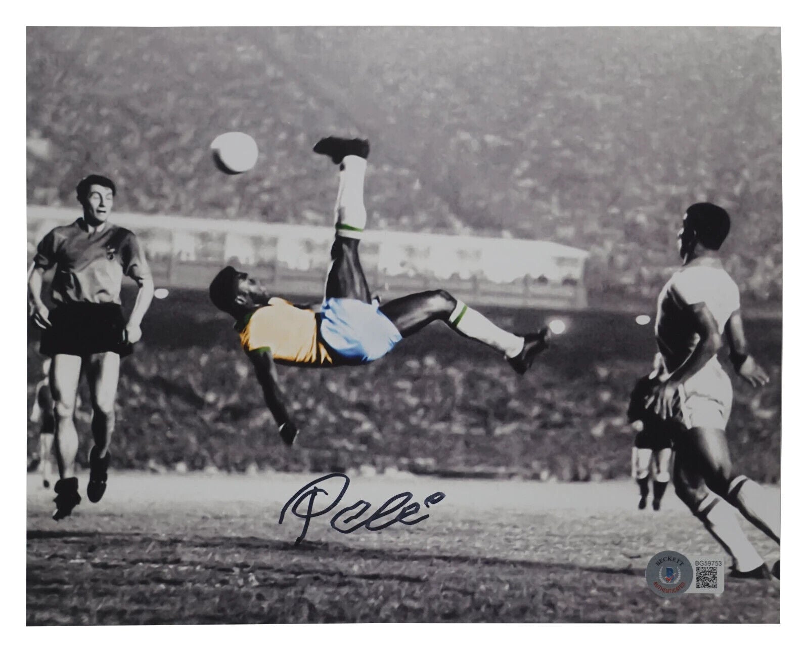Pele Signed Iconic Overhead Kick Soccer Print Size 8″ x 10″ with Beckett COA