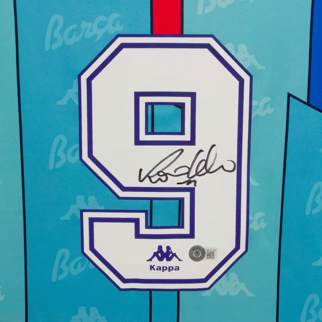 Ronaldo Nazario Signed FC Barcelona Home Soccer Jersey #9 with Beckett COA