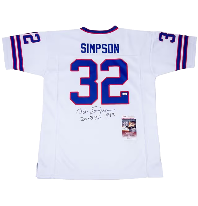 OJ Simpson Signed Buffalo Bills Football Jersey Inscribed 2003 YDs 1973 with JSA