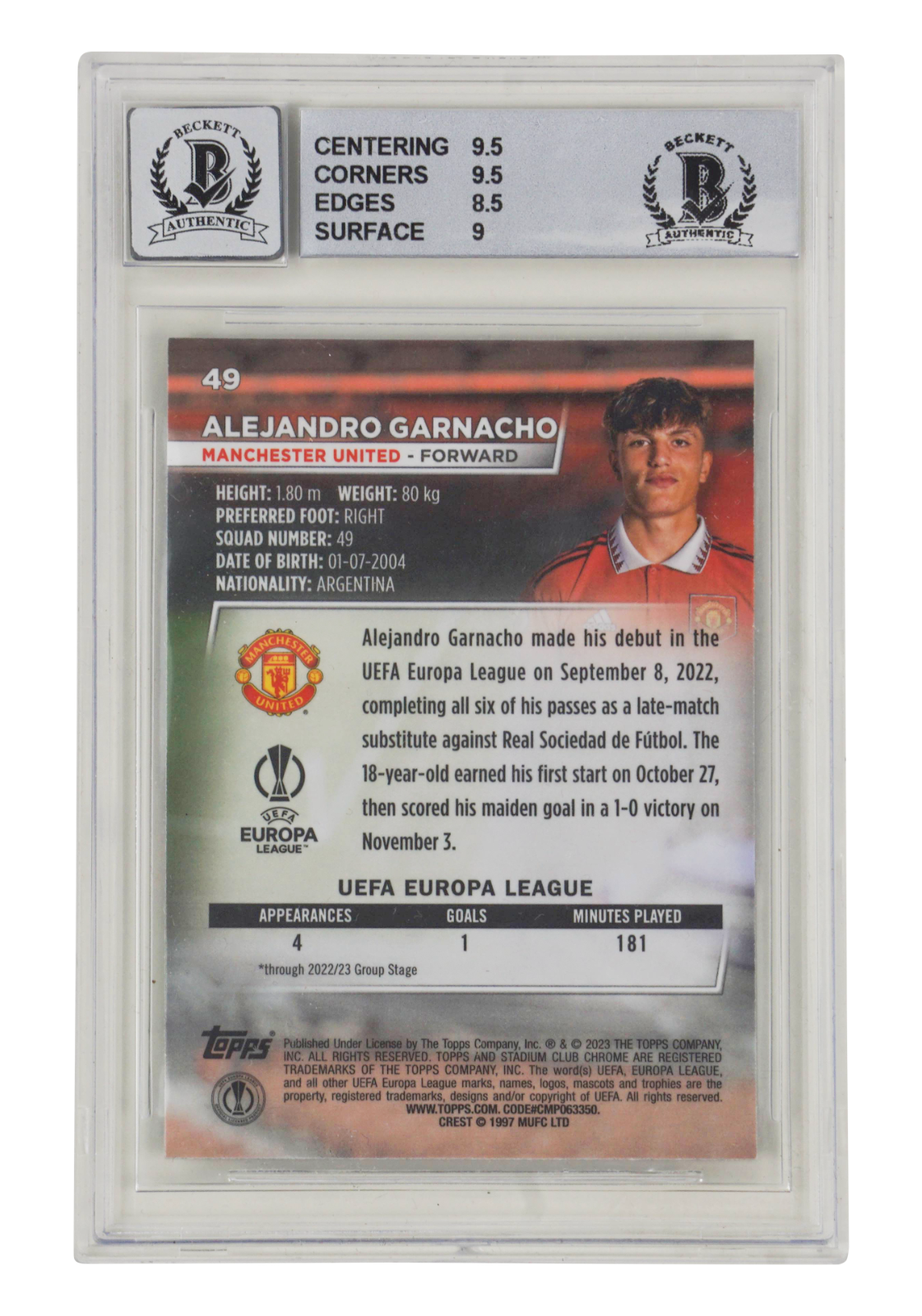 Alejandro Garnacho Signed 2022 Topps Stadium Club Chrome RC - BGS 9 AUTO 10
