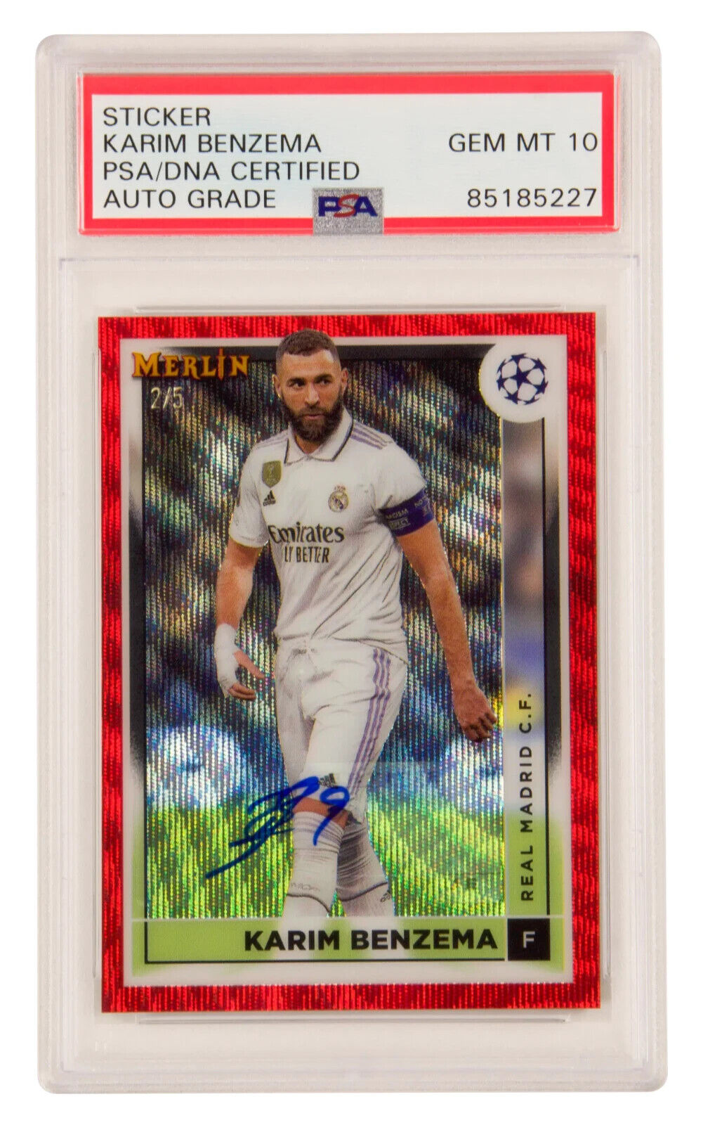 Karim Benzema Signed 2022 Topps Merlin Chrome Red Wave /5 – PSA 10 Autograph