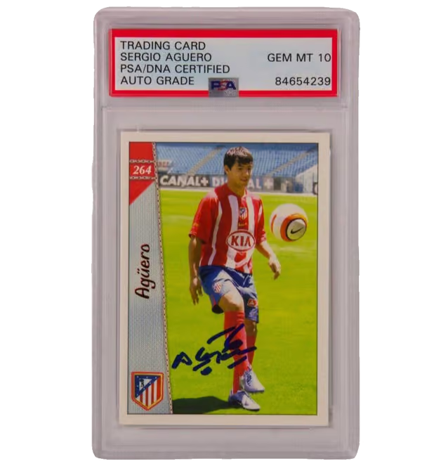 Sergio Aguero Signed 2007-08 Mundi Cromo Sport Rookie Card – PSA 10 Autograph