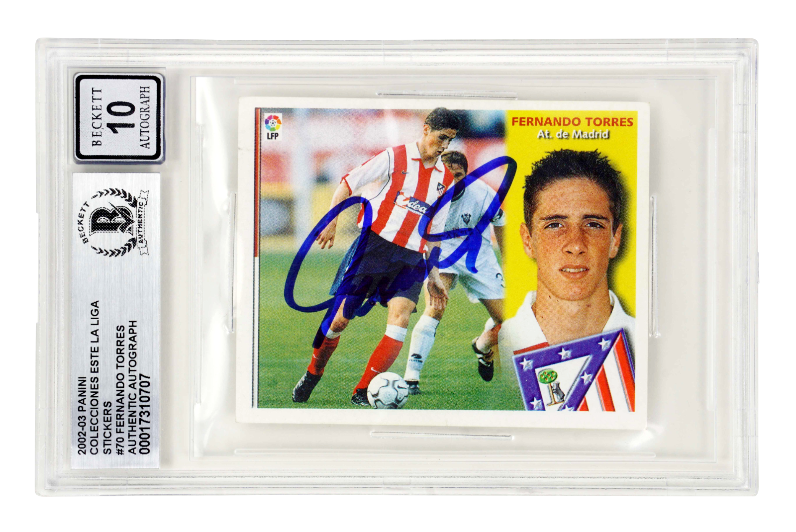 Fernando Torres Signed 2002-03 Panini Colecciones Este Rookie Sticker - BGS 10